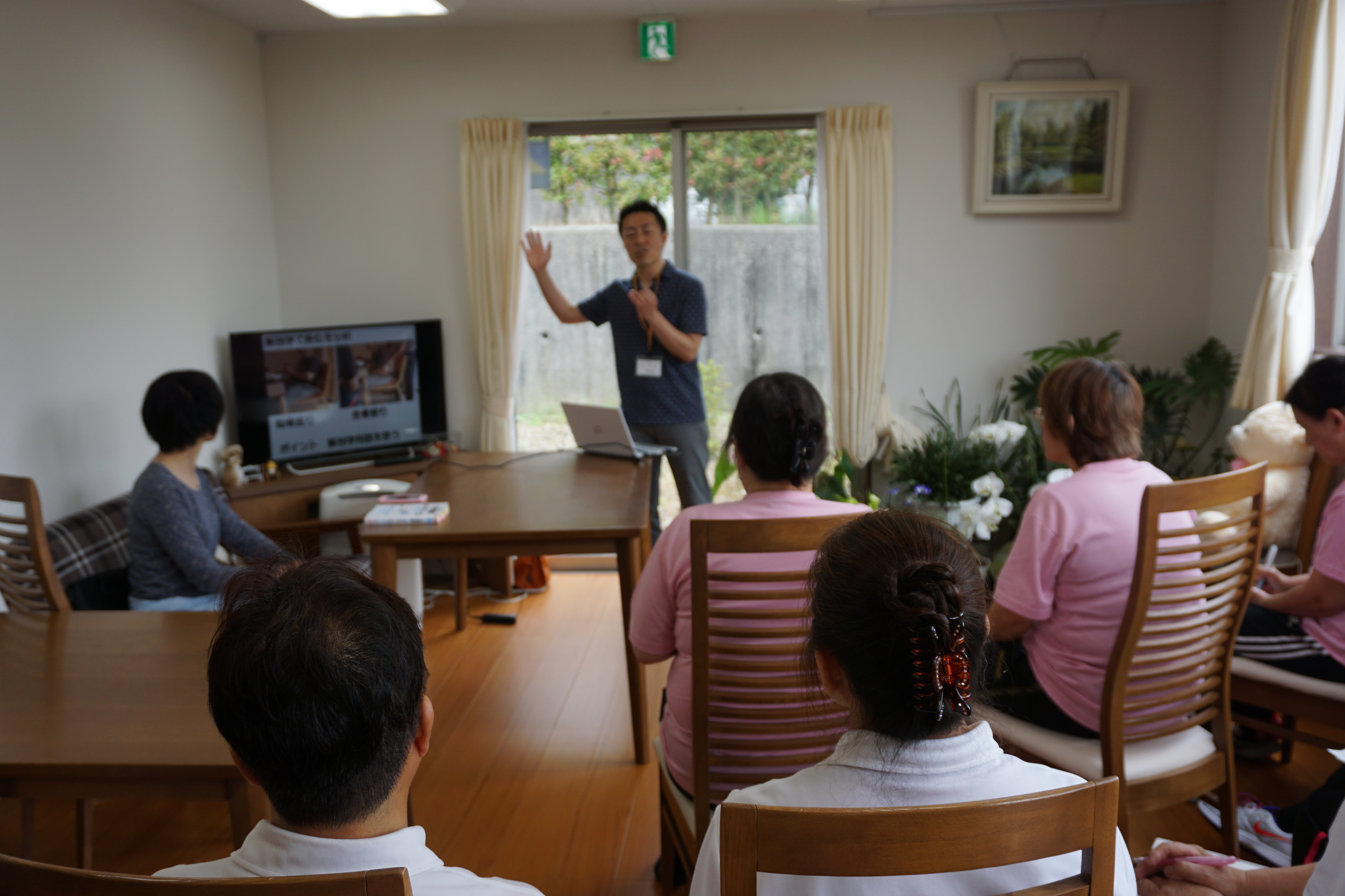 昨日(5月26日)、「生活リハビリテーション」のコンサルタント契約を締結している、京都府与謝野町在住の「松本健史先生」が来所されました。松本先生は「生活機能訓練」の著書を5冊ほど出され、「生活の中での機能訓練」を推進されています。毎月1回程度来ていただいているので、利用者様も「ちょっと見てもらいたいんじゃけど。」と言われる方が増えてきました。機能訓練指導員に個別に利用者様ごとに最良の機能訓練を指導していただいています。しかし、私が一番に力を入れているのは、職員全員が「デイサービスにおける機能訓練」を考え、実践できるようになる。そのための意識改革です。10(能力)×1人(職員数)=10(成果)、3(能力)×10人(職員数)=30(成果)、成果を、職員全員の掛け算にする。そのために職員全員が切磋琢磨する。そして協力し合う。それが本物のチームワークだと思います。私は、仲良しクラブのように職員が無目的にただワイワイと言ってるのが、チームワークとは思っていません。少なくとも本物ではありません。昨日、松本先生は奥様といっしょに来られました。お二人とも理学療法士です。ご両人とも物腰の柔らかな方です。ただ、武道・武術経験の長い私は本質を見逃しません。「闘志」という視点に焦点を合わせると、松本先生は「陰」、奥様は「陽」でした。どちらが良い、悪いといった低レベルの価値判断ではありません。私は現象面の価値判断をすることより、できるだけ物事の本質を見て知ろうという努力をしています。本質を知る能力の養成、言葉にすると難解ですが「相手の立場に立ち物事を考える」これだけでかなり見えてきます。これができだした職員さんには、もう少しレベルの高い「本質を知る能力」を養成するような試みを行っています。昨日、松本先生が言われました。「声にならない声を聞くことことが大切ですよ。そのためには、空気を読む、気配を知ることが必要です。」私も同感です。「デイサービスこもれび」の職員さんにいつも言っていることは、「重度の認知症の方や、あまり自己主張をしない方の声を聞くことが大切ですよ。声なき声を聞くことができだした人が、腕の良い、本物の介護職員ですよ。」厳密に言うと、声なき声を聞こうと努力し始めた時に本物になっています。本質を知るための感性ができています。長くなりました。昨日、松本先生から学んだことがたくさんありますが、次回に報告いたします。松本先生並びに奥様、昨日はありがとうございました。勉強になりました。